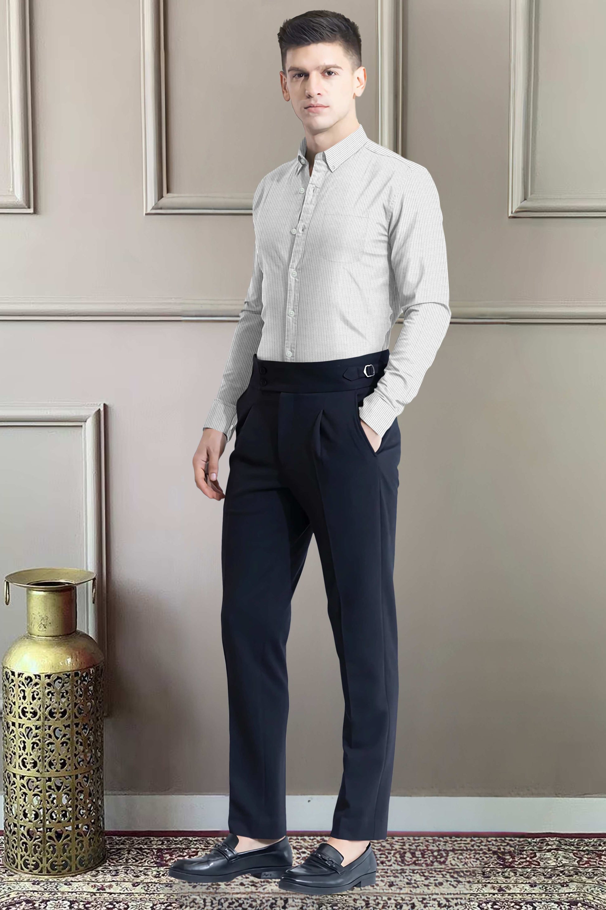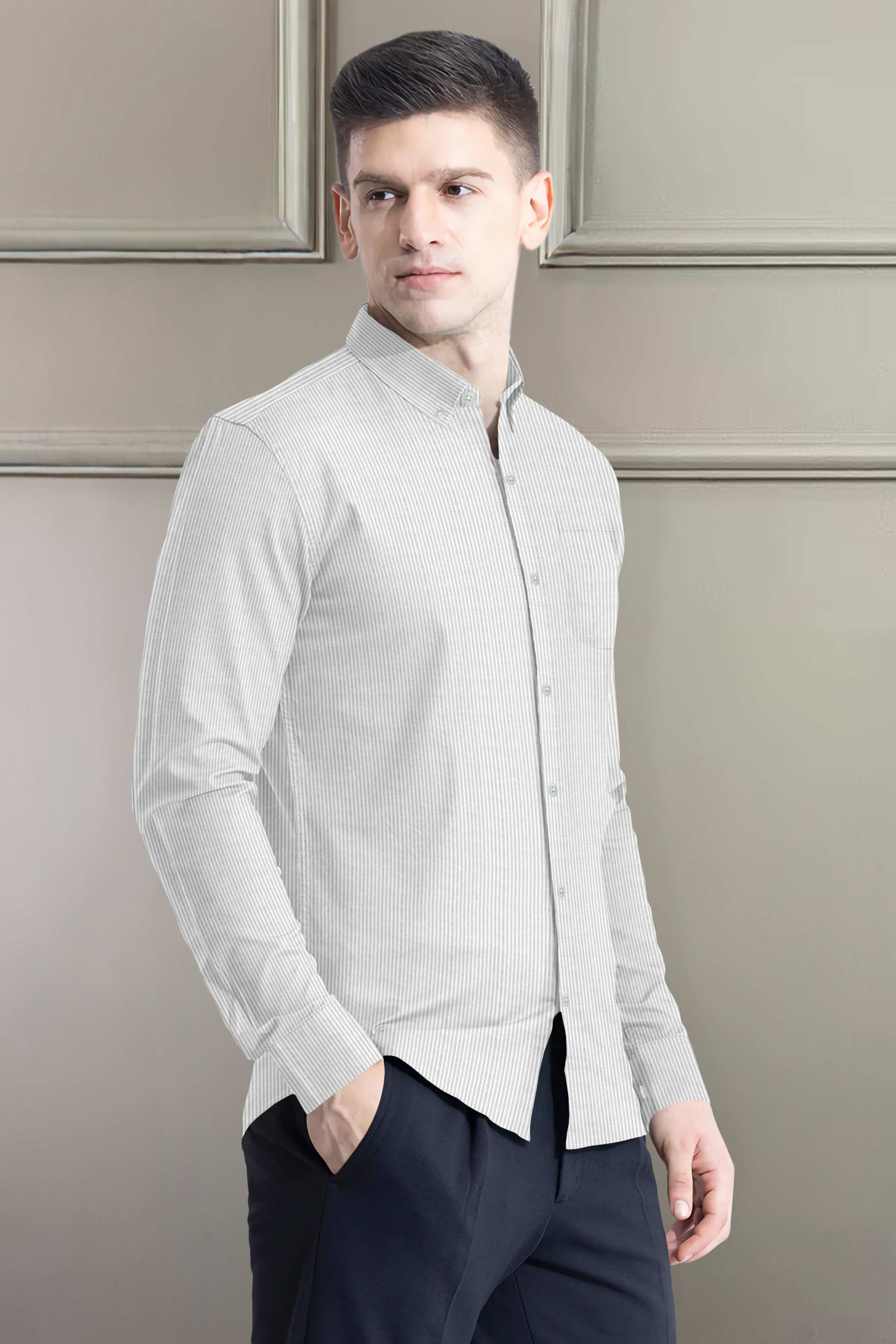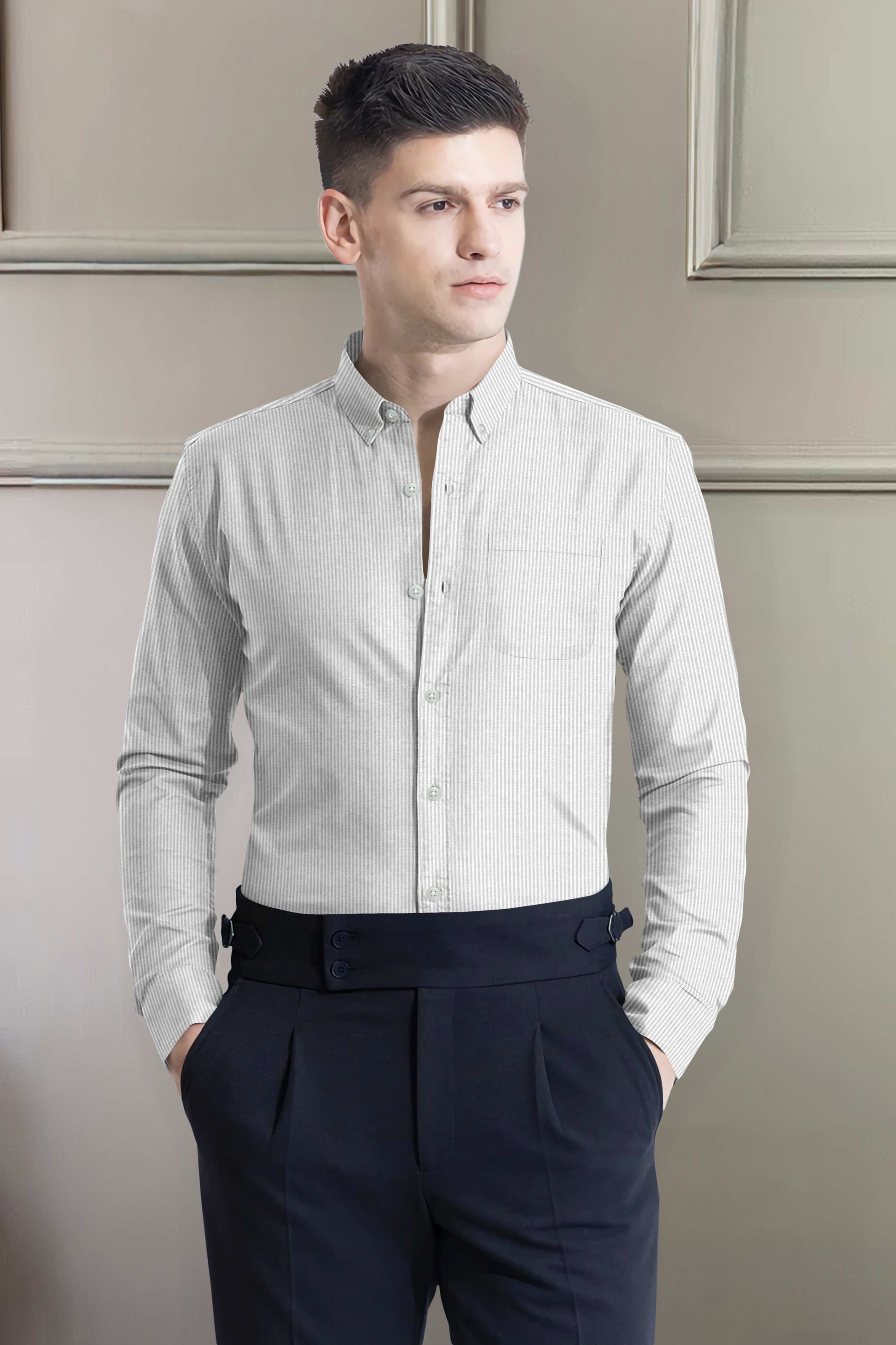 Pattern: Features a refined pinstripe design that brings subtle sophistication to your formal or semi-casual wardrobe.